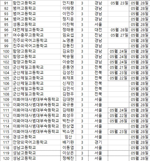 제20회 지올 전국대회 접수 현황 - 5/30 12:00 업데이트